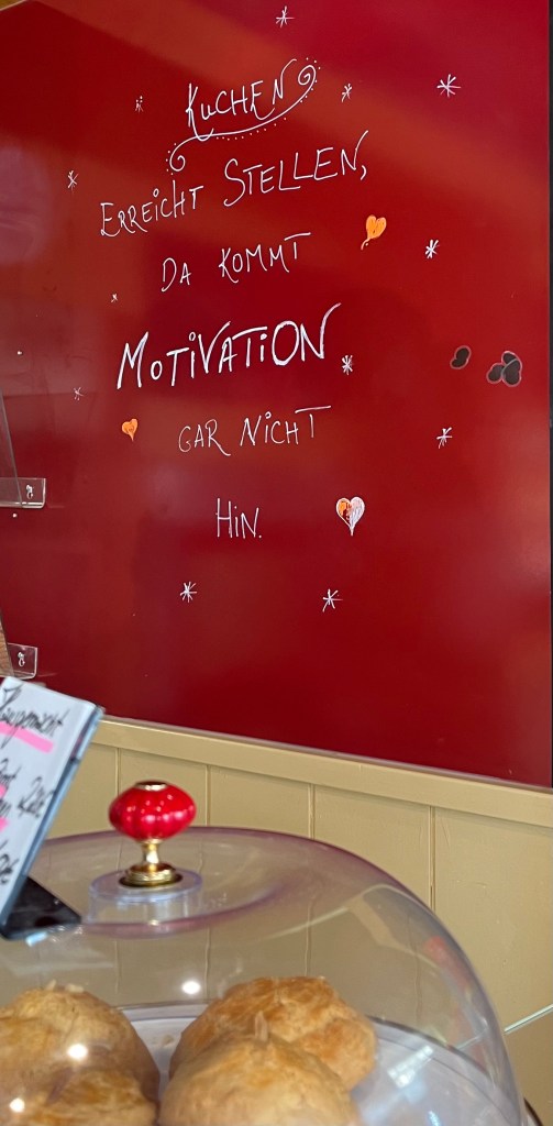 Diesen Spruch habe ich in unserer Bäckerei entdeckt. Ich habe mich darüber gefreut und für einen Augenblick haben die Damen hinter der Ladentheke mir damit ein Lächeln geschenkt. Und das finde ich sehr schön.